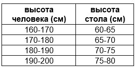Один из главных критериев при выборе стола – ваши анатомические особенности (обычно – ваш рост и длина рук и ног). И, если на второй критерий внимание обращают гораздо реже, то для первого есть весьма подходящая таблица: