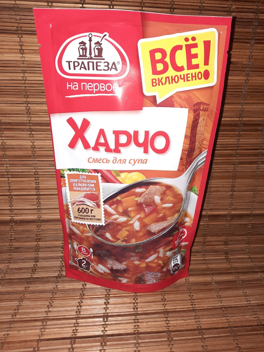 В магазине Светофор появилась новинка от производителя Трапеза - готовые смеси для супа стоимостью 47 руб. 50 коп. В ассортименте магазина было несколько смесей - харчо,