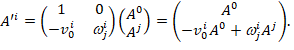Матрица преобразования gi j (4) и (5) отличается от случая преобразования контравариантных векторов тем, что она подверглась диагональному переворачиванию с изменением знаков элементов g0j: с -vj0 поменялась на + v0j. Это соответствует поднятию ковариантных и опусканию контравариантных индексов соответствующего тензора: при этой операции временные элементы с индексом 0 не изменяют своего знака, а с пространственными индексами изменяют свой знак. Обратите внимание на этот момент в статье по второй ссылке в начале статьи.