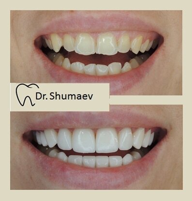 Только после этого приступают непосредственно к подготовке зубов, требующей обезболивания, примерке и установке виниров.