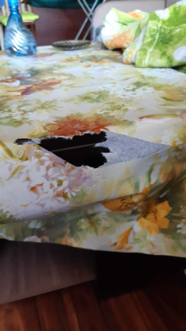 Оказывается, что небольшие "погрызы" нашего имущества, срыв занавесок, сброс не понравившихся вещей - это только начало планомерной операции "С новыми жильцами - в новый интерьер". Кто-то в предыдущих рассказах о наших воспитанницах написал "как бы Палыча на ленты не порвали...", так вот Палыч (хоть и увалень), умеет не только быстро ретироваться под стул, на полку, но и научился маскироваться. А вот за тем, как на ленты рвётся имущество, я следить не успеваю.