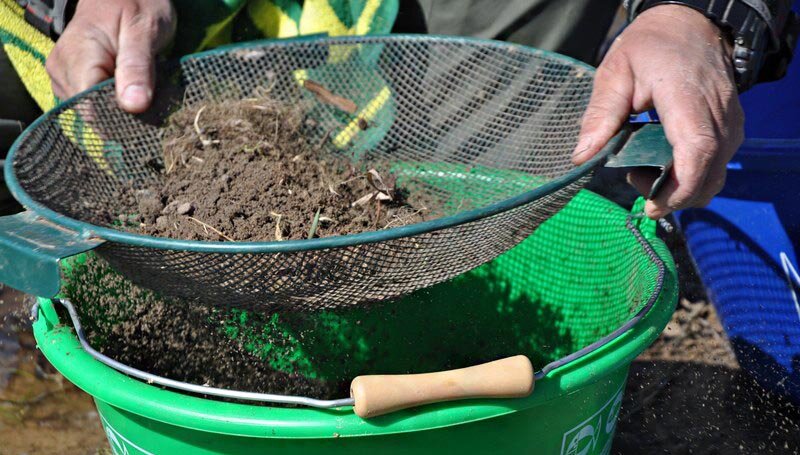 Для прикормочных смесей подходит средний и крупный по фракциям песок. Если при просеивании будет оставаться на сите гравий, его выбрасывать не стоит. Пригодится как добавка в прикормку для утяжеления смеси при рыбалке на значительных глубинах. Запаса песка на период чистой воды хватает 15…20 кг.