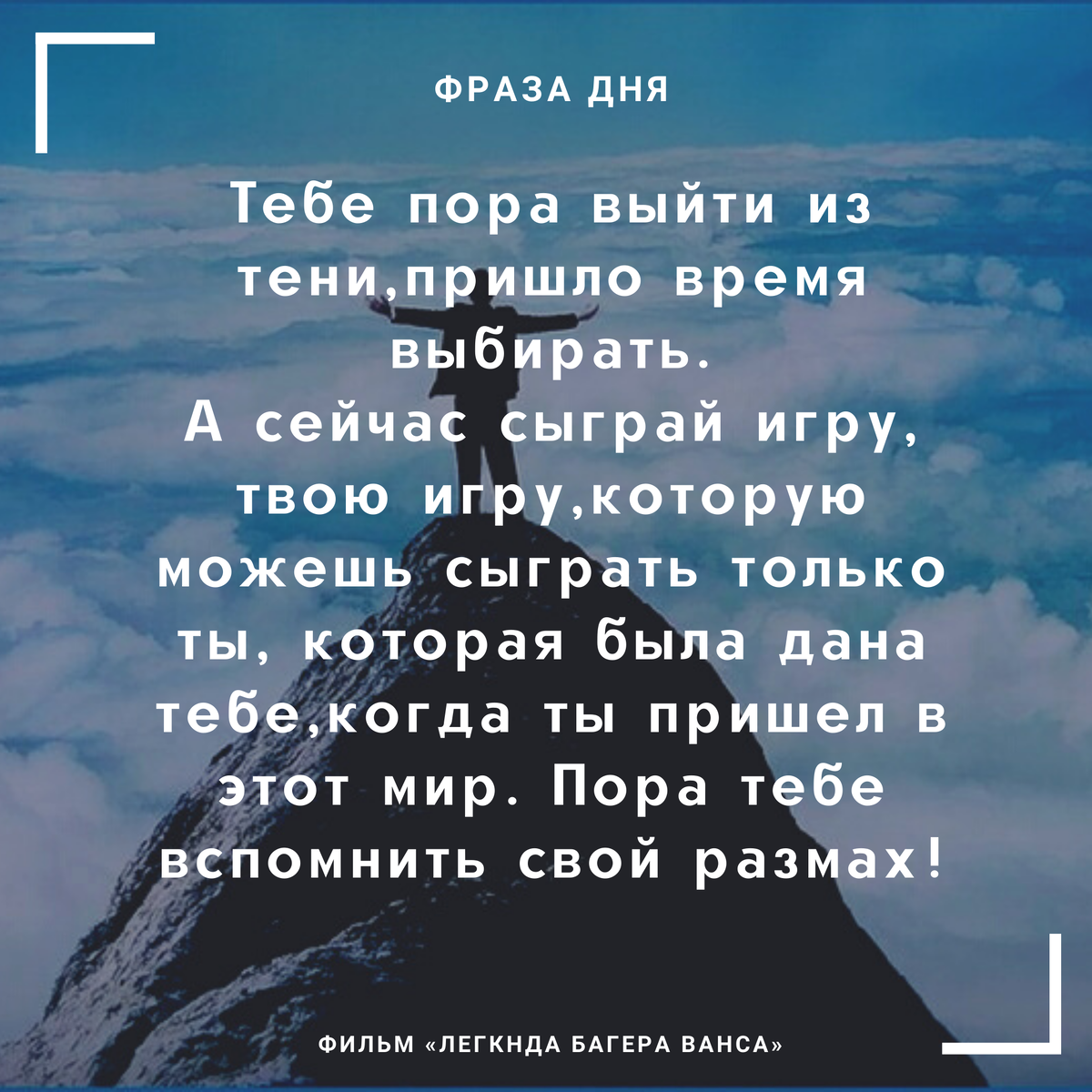 Почему мы так любим смотреть кино? Потому что движение кадров отражает иллюзию ДВИЖЕНИЯ и нашей жизни😉 Если бы мы замерли на месте и не моргали глазами,то осознали бы,что НЕТ никакого движения, на самом деле. Это трудно понять,но МОЖНО прожить на опыте,а тогда доКАЗывать себе не придется,что жизнь-иллюзия👌🏻 Фильм «Легенда Багера Ванса» я смотрела второй раз, но,тогда СТОЛЬКО золотых зерен я