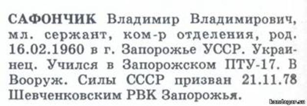 О Володе Сафончике знаю совсем немного. У меня не осталось никаких фотографий. Говорят, человек жив, пока мы помним о нем. Память о Володе навечно в моем сердце.