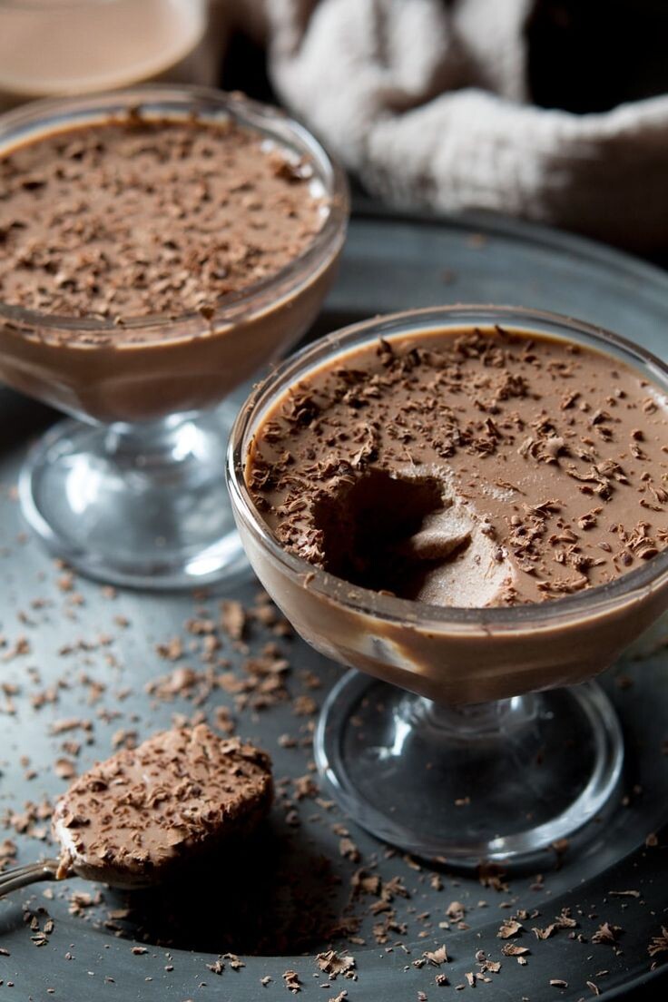 - Залить сливки мелко порубленный шоколад, перемешать до однородной массы и разлить по стаканам и формам. Накрыть пищевой плён