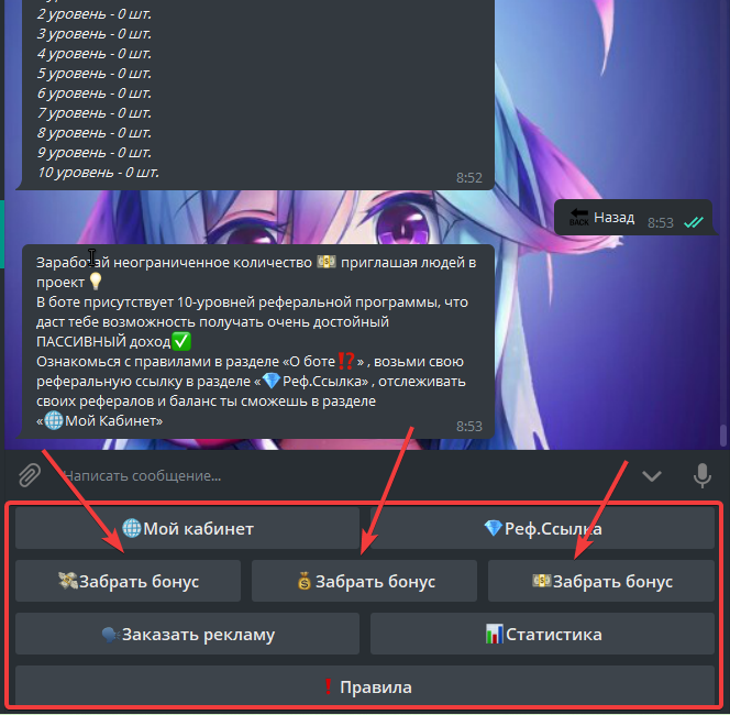 Алоха, читатели! Недавно я нашел один из немногих отличных телеграм ботов, который не обещает миллионы, но заработать там можно! А что же там нужно делать? Для начала давайте перейдем по данной {ссылке}, а дальше рассмотрим наш график здешнего заработка: Забирать вы можете 2 раза в сутки. По сути, нам надо только заходить да получать бонусы - больше ничего! А вот вывод доступен, как на балансе будет 90р, которые вы сможете получить за 3-4 дня. А теперь только посмотрите, какая реферальная программа у нас! Зовите своих друзей и подруг и получайте от них особенные бонусы! А вот здесь мы можем посмотреть, сколько дней работает бот и сколько доверяет ему людей! Делаем вывод: Бот платит, проблем с выводом не возникнет и можете выводить на любой кошелек!