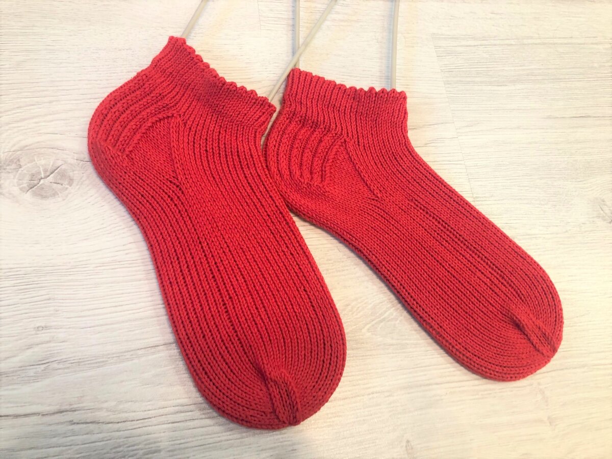 В виде зубчиков и двойным паголенком. Этот способ подойдет для коротких спортивных носков спицами. Я уже писала о том, подходит ли хлопковая пряжа для вязания носков. И давала обзор и отзыв на пряжу YarnArt Jeans.