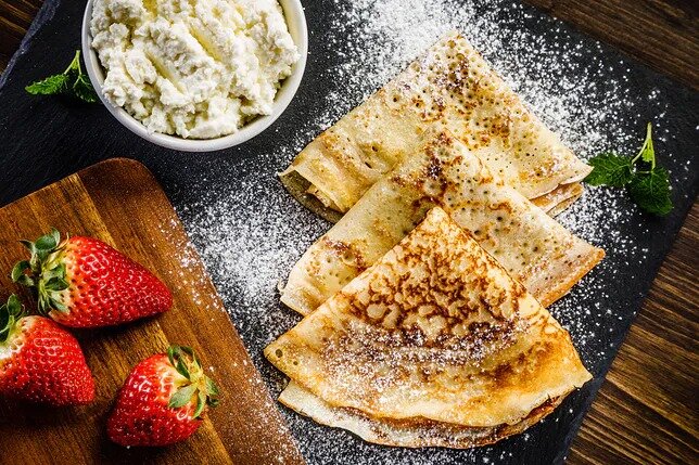 Если вы любите сладкие блинчики, вы будете в восторге от подходящего блинов. Прежде всего, не покупайте фруктовые кремы, шоколадные кремы и сладкие джемы . Подавать блинчики с начинкой из творога, смешанного с медом и фруктами. Вы также можете сочетать его с какао или натуральным йогуртом.