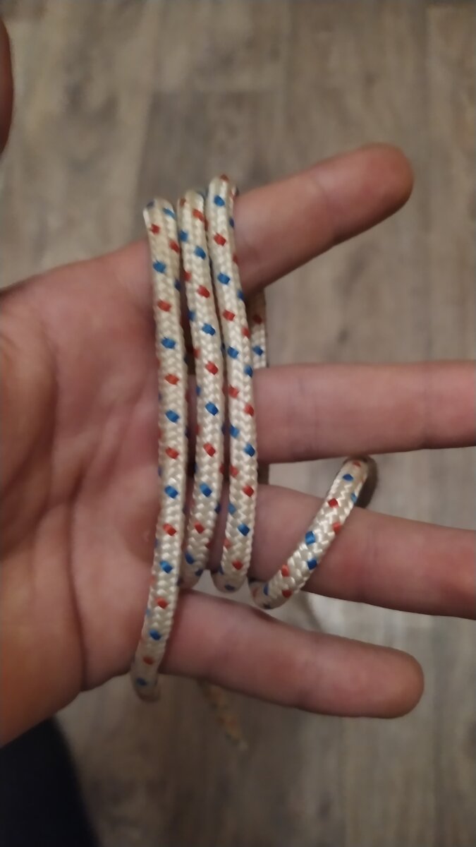 Для начала нужно взять верёвку и сделать три мотка вокруг руки или постороннего предмета.