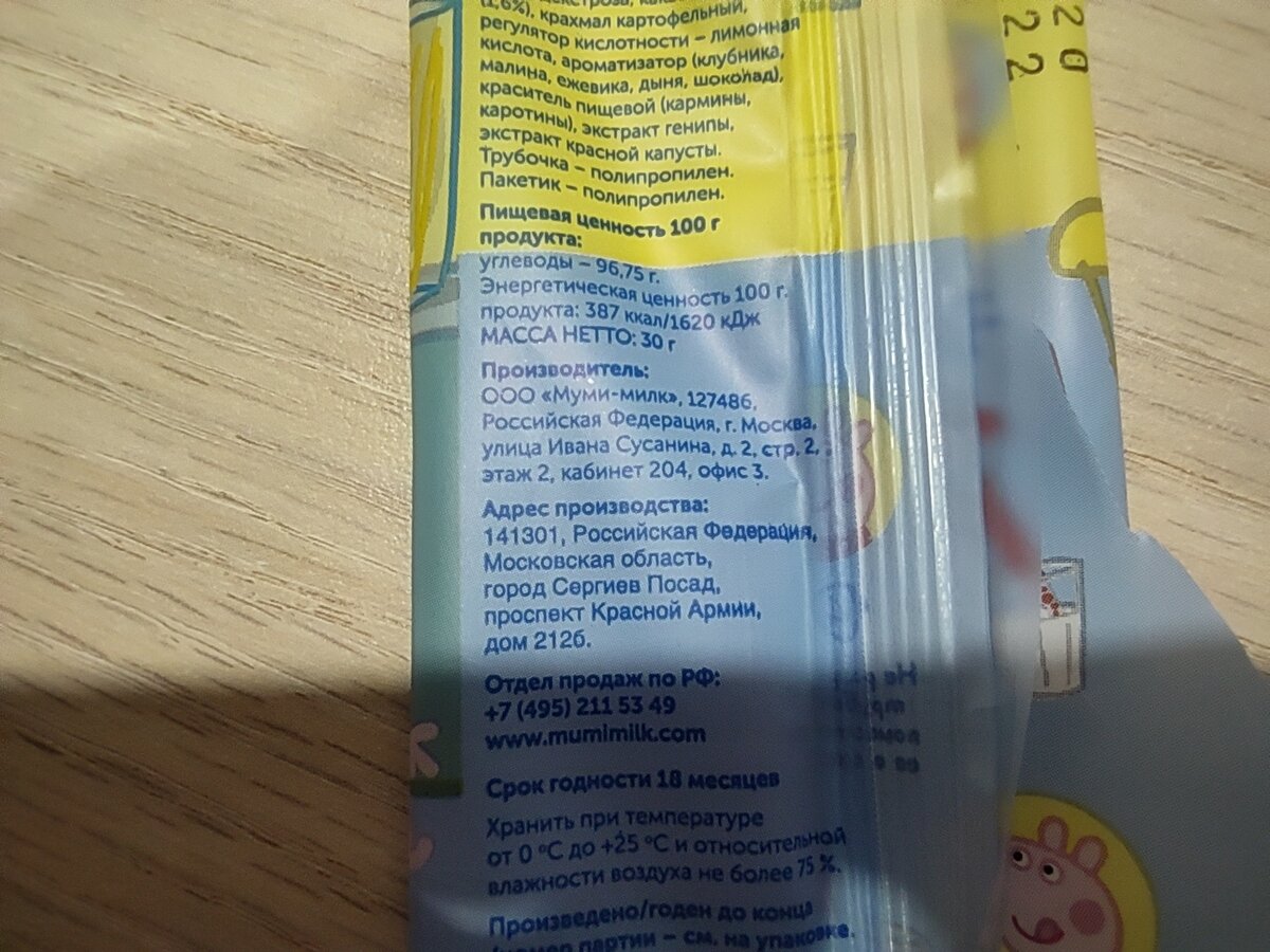 Но вот настал день, когда мое мнение изменилось, а бдительность и недоверие в отношении производителей перешли на новый уровень. И так, на днях мы с мужем пополняли продуктовый запас и в списке покупок числились трубочки для молока. Придя в стандартный для нас магазин распространённой продуктовой сети, мы по привычке взяли уже не раз приобретенные ранее трубочки от ООО "Муми-милк" серии "Peppa Pig":