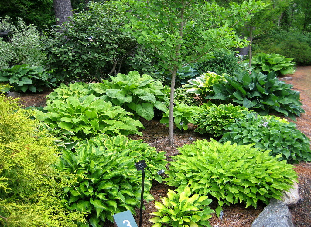 Неприхотливая красавица хоста широко используется в ландшафтном дизайне. Благодаря большому количеству сортов, имеющих различную форму и окраску листьев, можно создавать в тенистых уголках сада замысловатые композиции из хост.