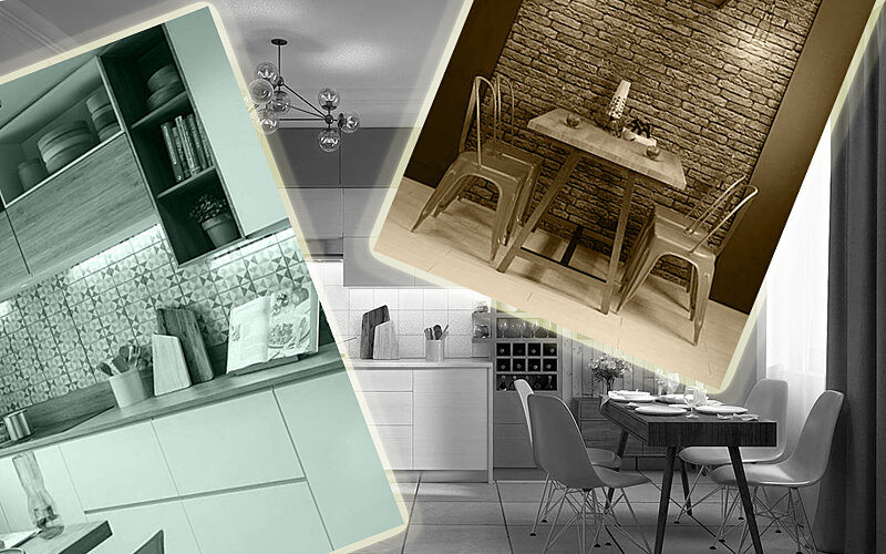 И если среди отделочных материалов для рабочей зоны лидирует керамическая плитка, то в обеденной лучшей отделкой являются обои и фотообои.