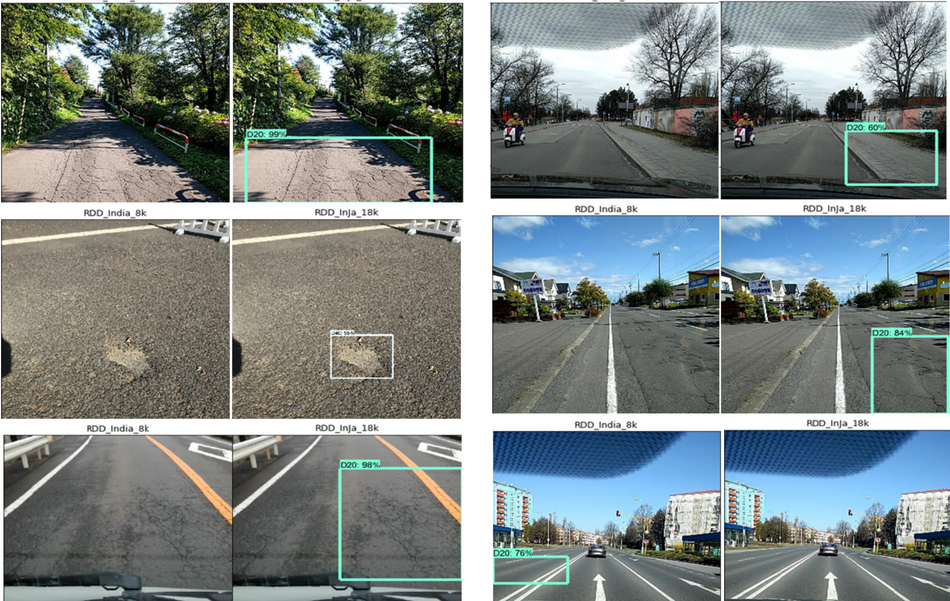 Используя новый набор данных в сочетании с существующими наборами данных для обнаружения дорожных повреждений, исследователи разработали более надежные модели обнаружения дорожных повреждений, которые удовлетворительно работают во многих странах.