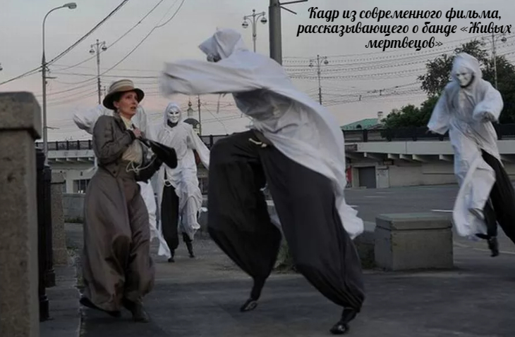 Неспокойные годы после Революции стали временем раздолья для жуликов, мошенников и воров всех видов и рангов. Буквально за несколько следующих лет молодая Советская милиция навела порядок и прекратила криминальный разгул, однако произошло это не сразу и стоило огромных трудов и жертв. Пока же, на волне перемен и смены власти, преступники изощрялись как могли. Однако то, что придумал уголовник Ванька-Живой труп, превзошло все, что можно было бы ожидать от обычных грабителей. Началось все с идеи – как бы получше запугать обывателей, чтобы те и пикнуть не смели, пока их карманы обчищают, да и потом, чтобы лиц не узнали, рассказать толком ничего бы не смогли. Придумал Ванька нарядиться во время ограбления покойниками, а чтобы еще страшнее было – на ходули подняться или придумать прыгалку какую-нибудь, ведь двадцатый век на дворе, пора науку и технику привлекать к делу. После такого маскарада ограбленные, если что и расскажут, – не страшно, милиция «привидений летающих» явно не будет искать! Вот такой криминально-режиссерский талант и фантазию проявил Иван Бальгаузен, собравший вокруг себя для нового дела целую команду. Приятель Демидов, который был когда-то жестянщиком, взялся изготовить ходули да сильные пружины к обуви, чтобы можно было «сигать» - быстро и высоко. А верная любовница Манька Соленая, у которой нашлась швейная машинка (на самом деле Мария Полевая была женщиной запасливой и рукодельной), сшила, посмеиваясь, огромные белые саваны и колпаки.