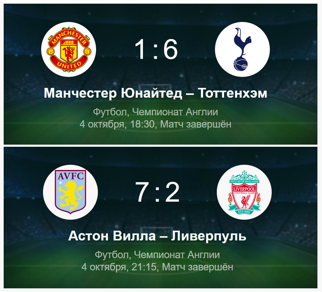 В этот невероятный день "Манчестер Юнайтед" проигрывает, на своём поле, "Тоттенхему", с разгромным счётом 1-6, а "Ливерпуль" в гостях у "Астон Виллы" влетает 7-2!