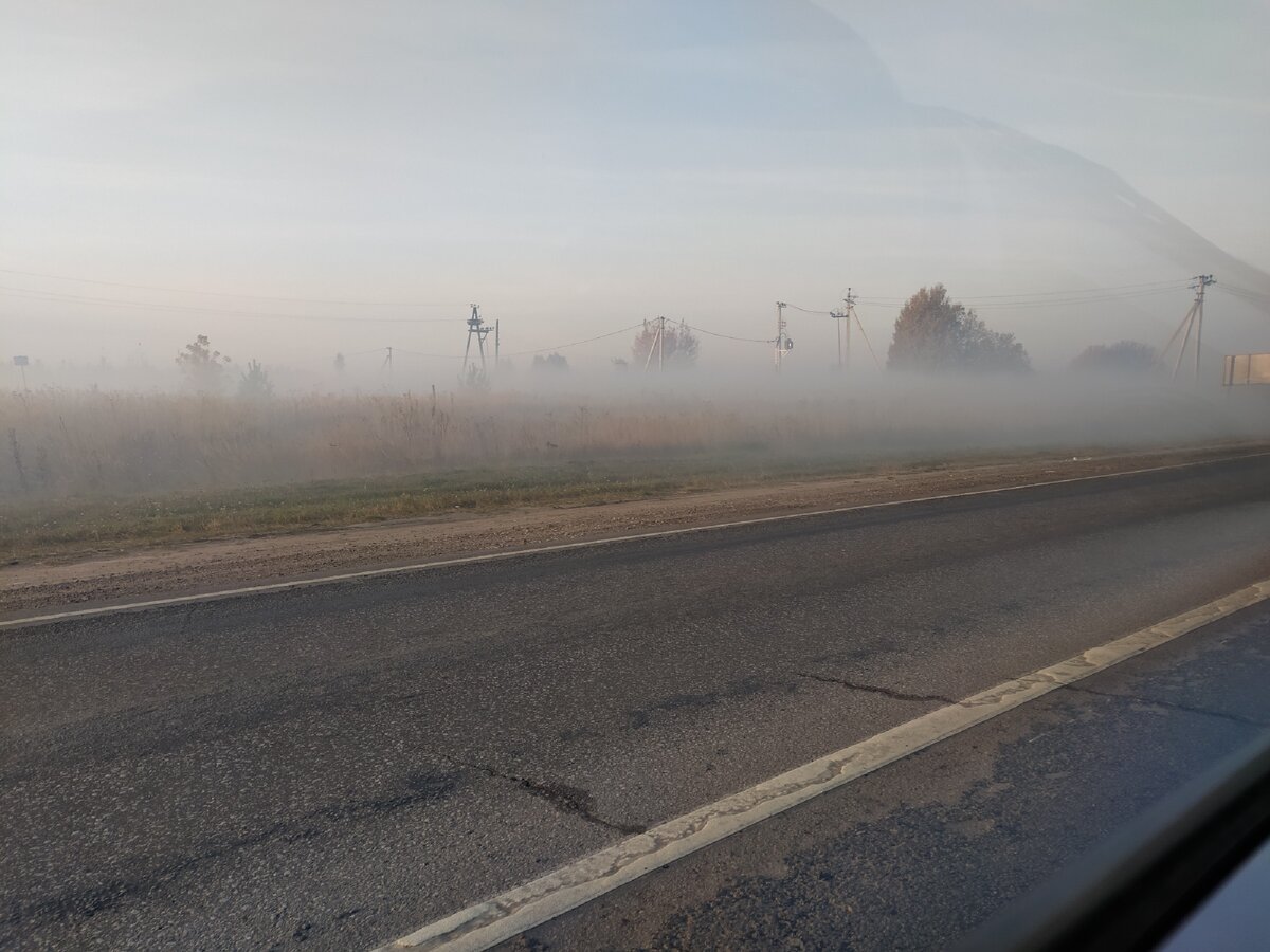 Хорошо видимо свалка горит. Потому что следующие километров пятьдесят примерно, вдоль дороги был дым. Хорошо хоть не такой густой как на фото выше.