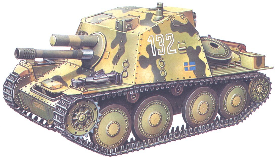 Первая относительно крупносерийная шведская САУ. Разработана фирмой Scania-Vabis по образцу немецких штурмовых орудий на базе легкого танка Strv m/41. В 1943 — 1944 годах изготовлено 36 единиц.