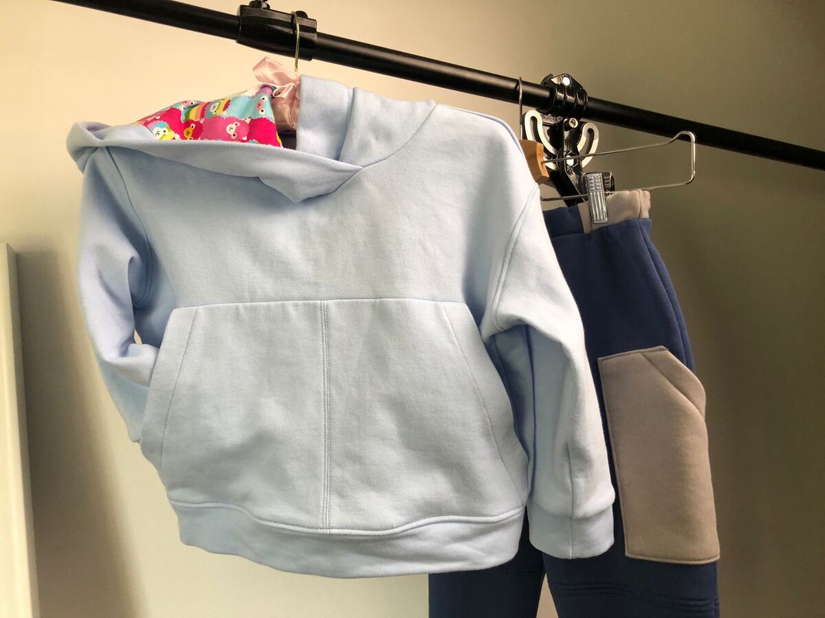 Решила сшить худи с капюшоном и большим накладным карманом. К ним джогеры с двумя боковыми карманами, пояс на резинке, манжеты штанов тоже на резинке.