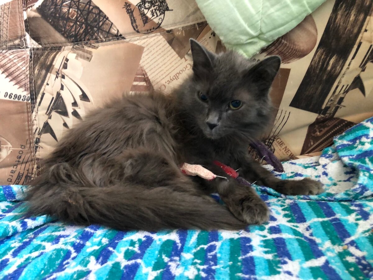 Изначально со спицами и внешними конструкциями на лапах Мышка должна была ходить до середины ноября. Боюсь, срок ношения продлят до конца года ((( Скорее всего, после переделки лапы, кошке придется снова сидеть в клетке и на этот раз дольше.