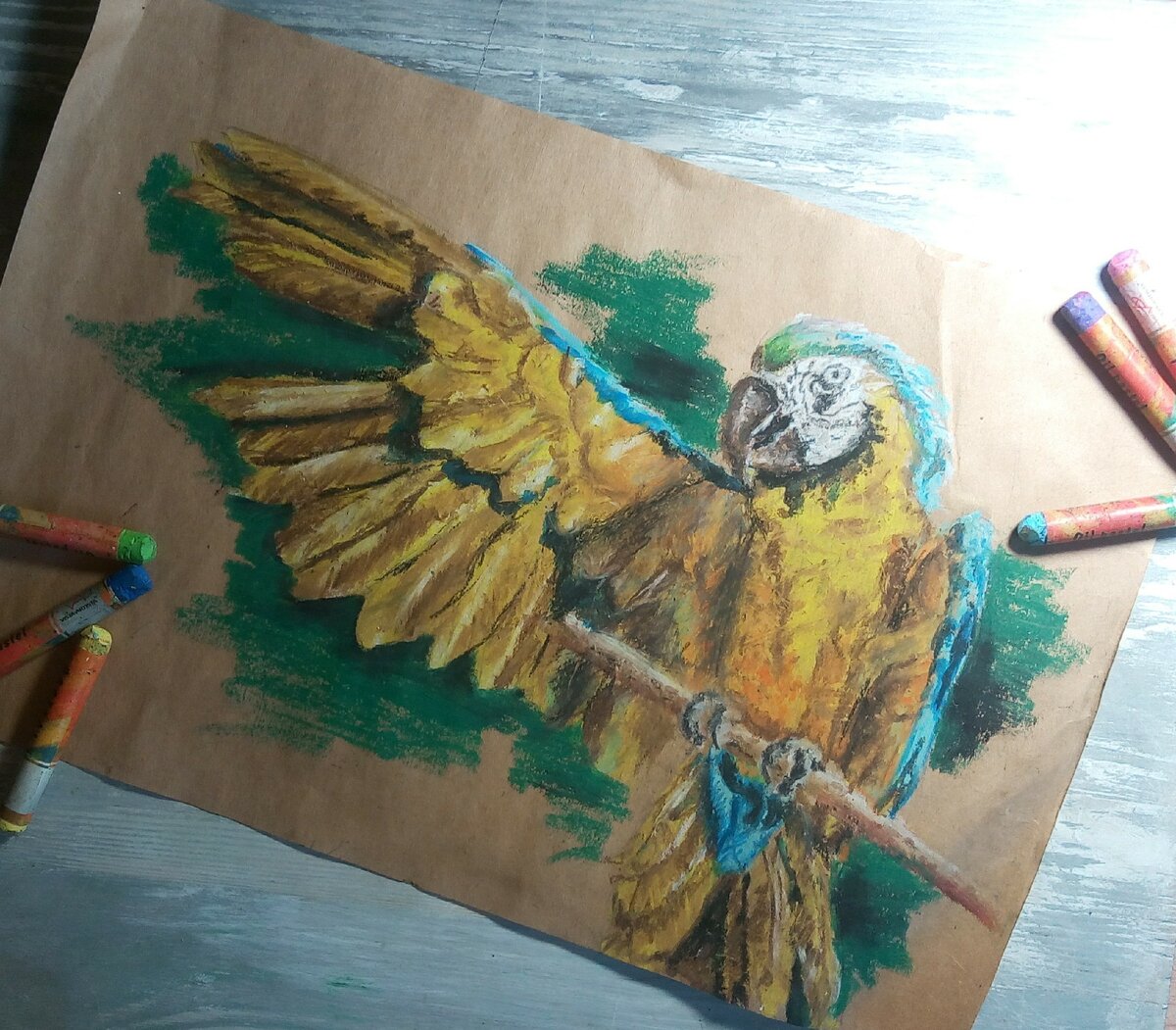 Как рисовать просто? Рисуем попугая масляной пастелью.