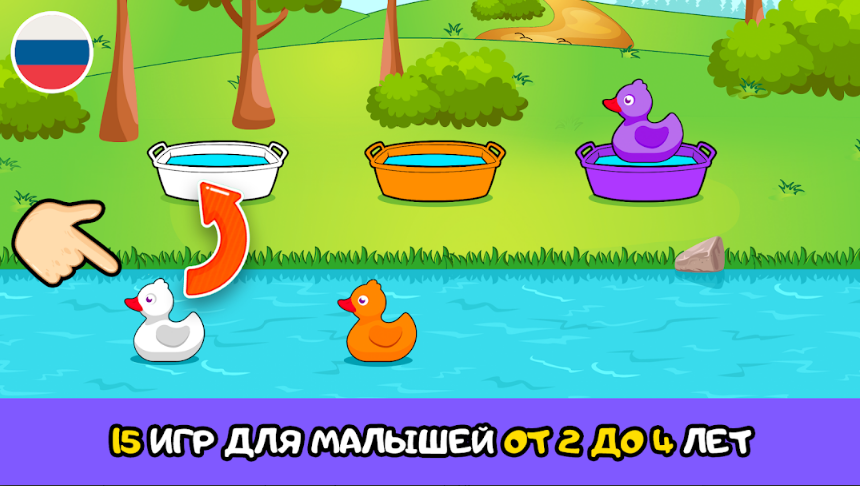 Обучение ребенка через интересные игры на мобильный телефон можно начинать уже в самом маленькой возрасте, поскольку на Android есть множество развивающих игр для детей 2-4 лет. Мы рекомендуем это универсальное приложение на русском языке, в котором собраны 15 различных игр для детей, помогающих им изучать цвет, форму, слова и многое другое.