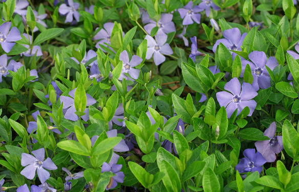 Особенно мне понравился теневыносливый Барвинок. Мало того, что он смог расти там, где все другие растения отказывались, так еще оказался вечнозеленым растением. Барвинок и под снег уходил с зелеными листьями, и как только пригревало солнце весной вновь выбирался из-под сугробов зеленым. Его листики довольно мелкие, но они не опадают и не теряют своей окраски даже зимой. Кроме того, я каждый раз прихожу в восторг, когда в начале июня почвопокровник начинает цвести.