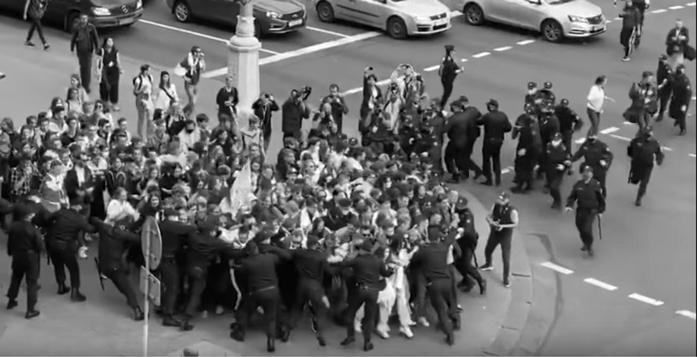 Юлий Ким поет о зверствах силовиков, а в видеоряде – знакомые в последние месяцы не только белорусам, но и всему миру, хроники милицейского беспредела во время мирных акций протеста.