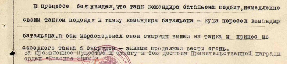 Командование дивизии посчитало, что действия механика-водителя достойны быть отмеченными орденом Красного Знамени.