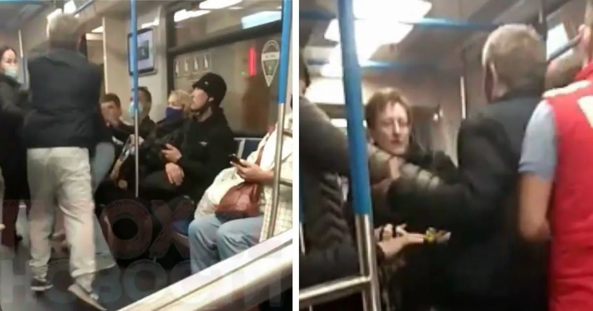 По сети разошлось видео, в котором мужчина сначала толкает женщину, пока они еще стоят на платформе, а потом в вагоне набрасывается на нее с кулаками. За женщину тут же вступились другие пассажиры.