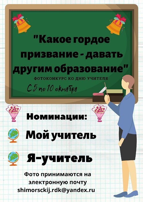 Фотоконкурс «День учителя» (0+) Место: Шиморский РДКДата: с 5 по 10 октября