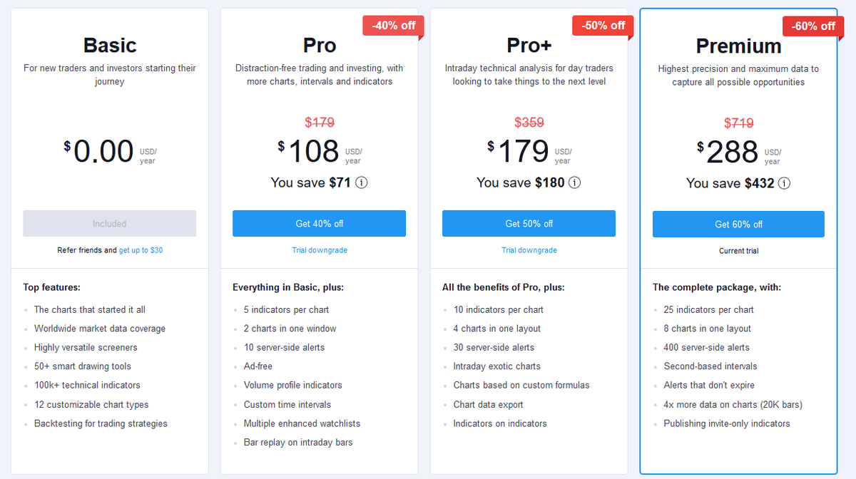 Всем привет! Делюсь хитростями. Trading View предоставляет бесплатный период к Premium подписке на 30 дней. Для этого требуется: Чтобы заново оформить бесплатный доступ к Premium подписке все данные должны быть разными. Причем ключевым здесь является IP адрес.