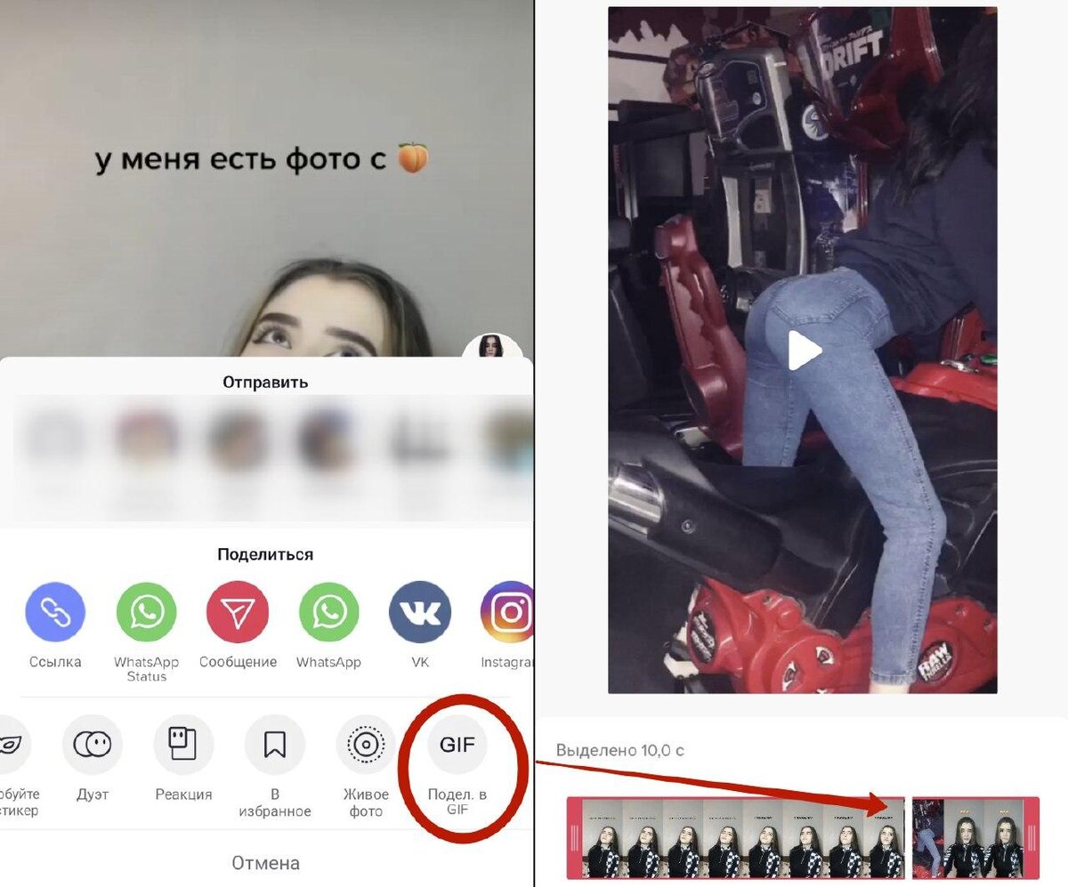 - Пролистать нижний список в самый конец и выбрать "Поделиться в GIF".