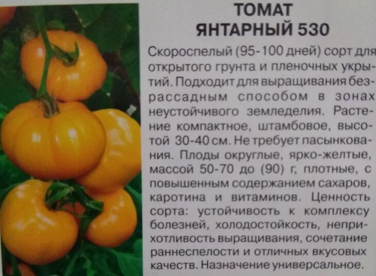 Томат Янтарный 530 – результат работы отечественных селекционеров. Оригинатором сорта выступает Крымская ОСС. В 1999 году гибрид прошел испытания и включен в Государственный реестр РФ. Помидор Янтарный рекомендован для выращивания во всех регионах России. Сорт подходит для посадки на садовых участках и в небольших фермерских хозяйствах.