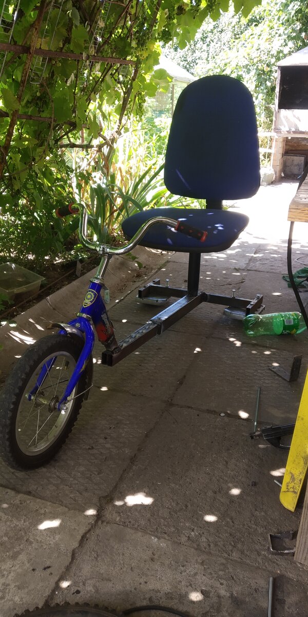 Решил я сделать детям трайк из гироскутера. Почему трайк?да потому что трайк сделать проще всего. А теперь о затратах гироскутер б/у 25у.е,акб 40у.е,велосипед детский 10у.е,2 контроллера 20 у.е,ручка газа 7у.е, остальное было найдено бесплатно. Итого получается 100у.е плюс топливо на разъезды.в итоге получилось вот что.