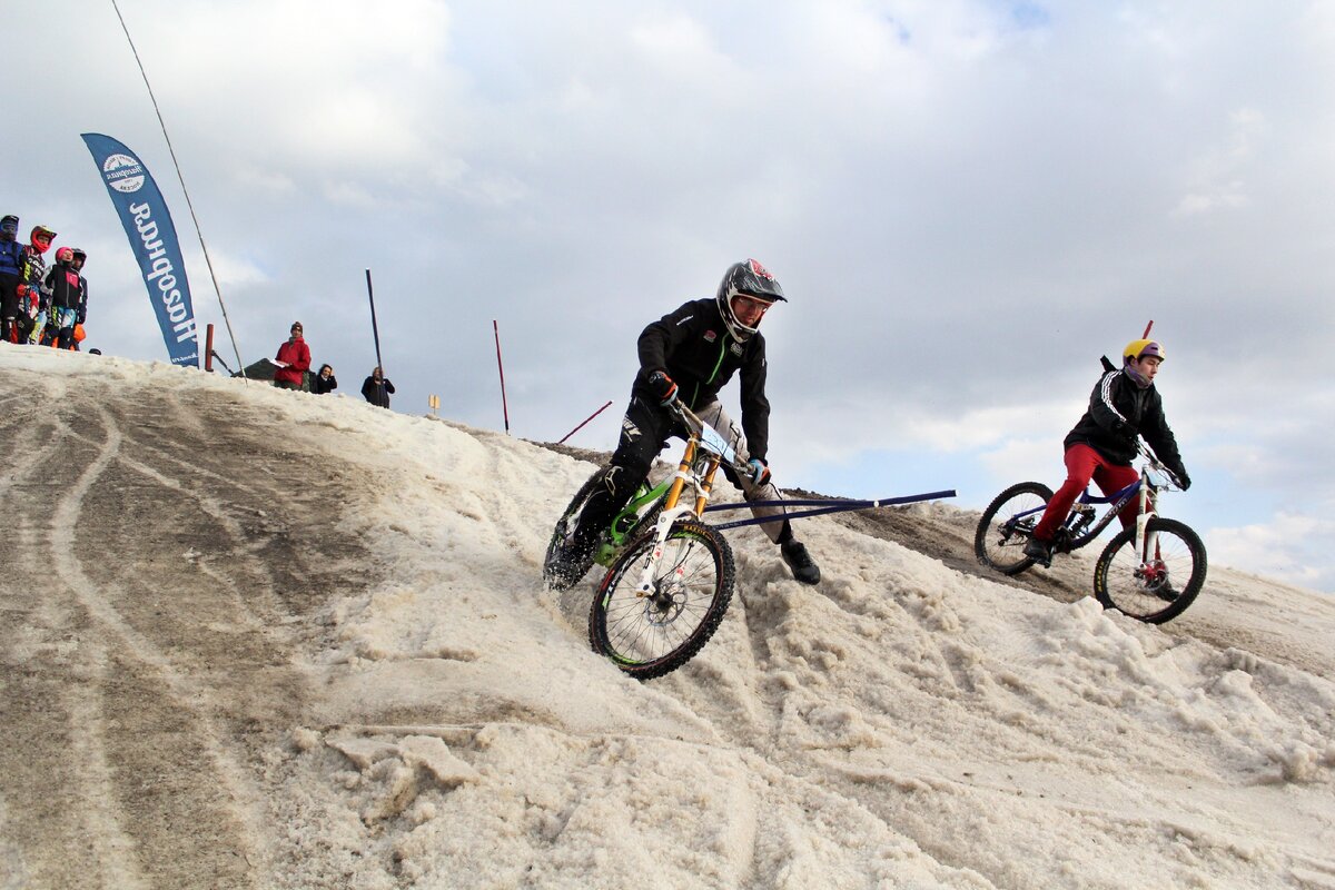 Однажды....в спортивном комплексе Кант провели одновременно и закрытие и открытие сезона. Правда закрыли сезон сноубордисты и лыжники. А открыли его — велосипедисты.