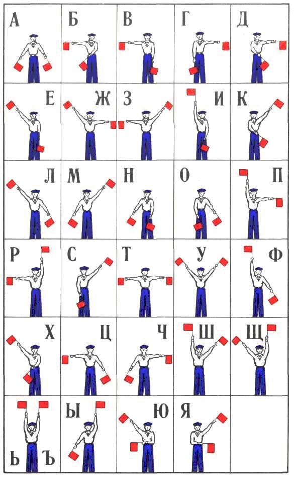В 1760-х годах на морском флоте стали осваивать систему визуальной связи, используя семафорную азбуку. Сигнальщик, держа в обеих руках флажки, имитировал стрелки часов, где каждой букве и цифре соответствовало определённое положение рук с флажками. Данная система связи получила большую популярность и используется до сих пор, когда другие способы связи невозможны.