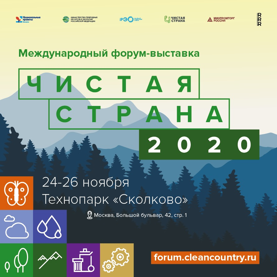 24 – 26 ноября 2020 года в технопарке инновационного центра «Сколково» будет проходить второй Международный форум-выставку «Чистая страна». Это крупнейшее мероприятие в России, посвященное реализации всех направлений национального проекта «Экология» за 2020 год.