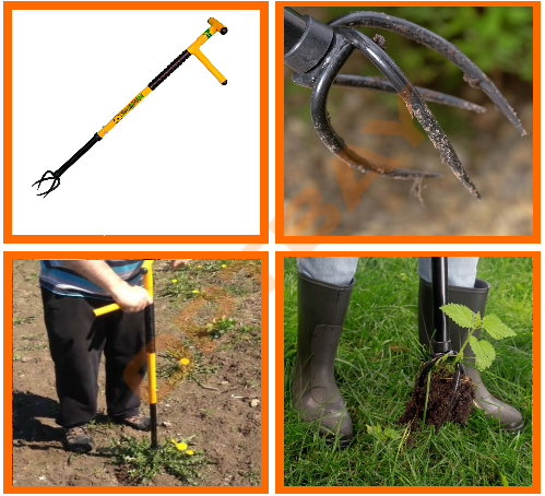 Но на видео более технологичный, с механическим удалением земли с сорняком из спирали инструмента. Не нужно наклоняться и руками удалять дерн. Вырвал – нажал, перешел к следующему сорняку. Модель называется - механический удалитель сорняков: