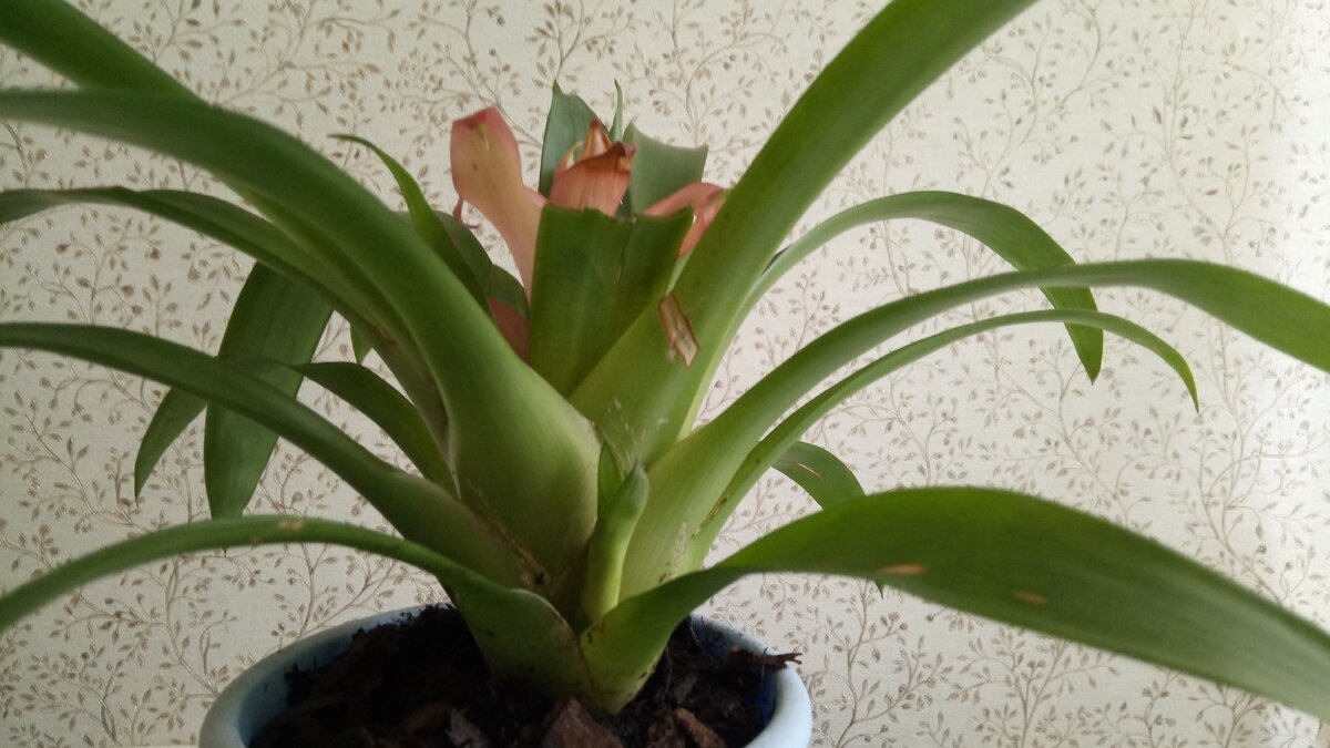 Она же гузмания.Цветок,похожий на фонтан.