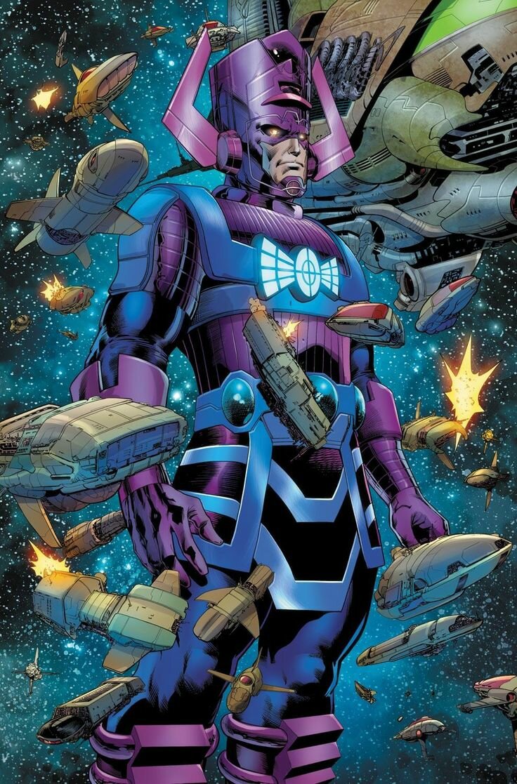 По традиции начнëм с персонажа Марвел. За всë время своего существования, Галактус считался одним из наиболее опасных существ во вселенной. Ведь пожиратель планет обладал таким могуществом, что без труда мог