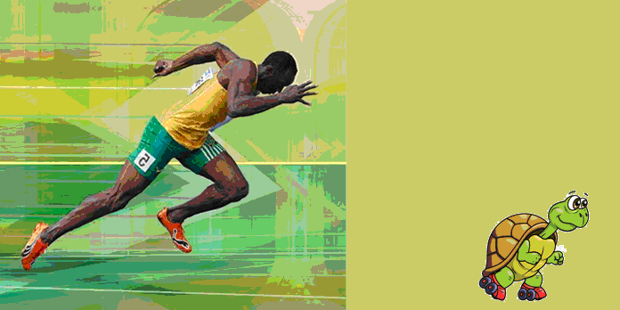Итак - Ахиллес бежит в 10 раз быстрее черепахи. Черепаха стартует на 1000 шагов впереди Ахиллеса. Сможет ли Ахиллес догнать черепаху?