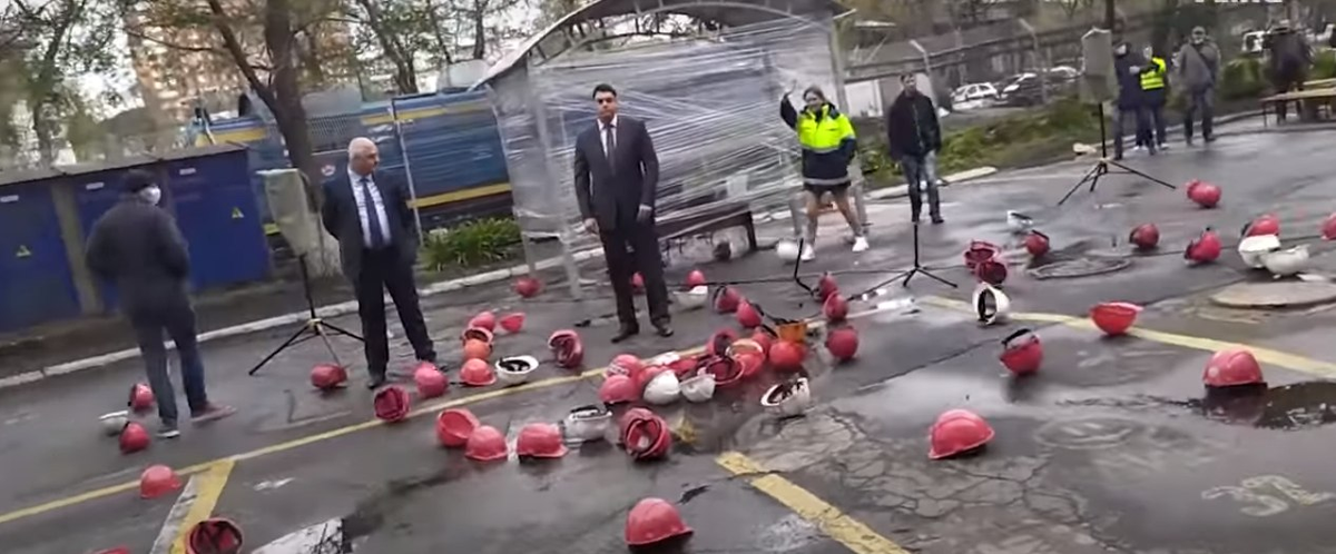 Митингующие не стали задавать вопросов, а сразу же перешли к «действиям» – начали кидать в начальство рабочие каски и требовать отставки нового руководства порта.