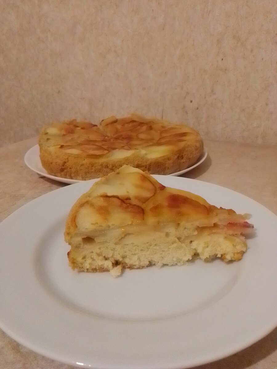 форму застелить фольгой и смазать маслом. Выложить яблоки, залить тестом и поставить в разогретую до 180 гр. духовку на минут. Готовность пирога проверяем ножом. Протыкаем пирог и если на ноже нет следов теста- шарлотка готова!