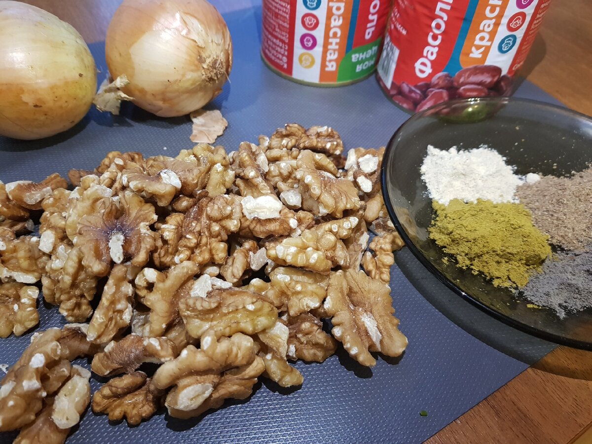 3. Орехи, фасоль, зелень пропускаем через мясорубку.