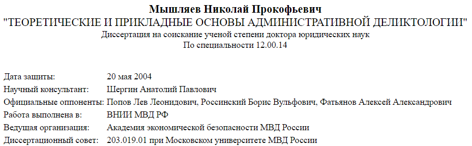 Первый донор - Мышляев Дмитрий Николаевич. Почти 100 страниц в докторской диссертации реципиента Н.П. Мышляева полностью или в значительной части совпадают с фрагментами диссертации Д.Н. Мышляева (между тем, совместных публикаций у Мышляевых не обнаружено).