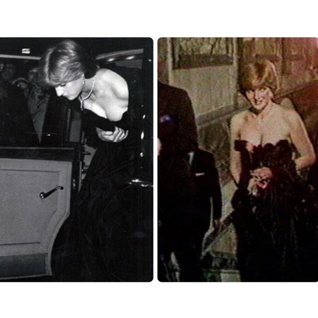 В такой ответственный день Диана Спенсер отдала предпочтение черному таффетовому платью с глубокими декольте от Дэвида и Элизабет Эммануэль. Пресса была в восторге от выхода будущей супруги принца -