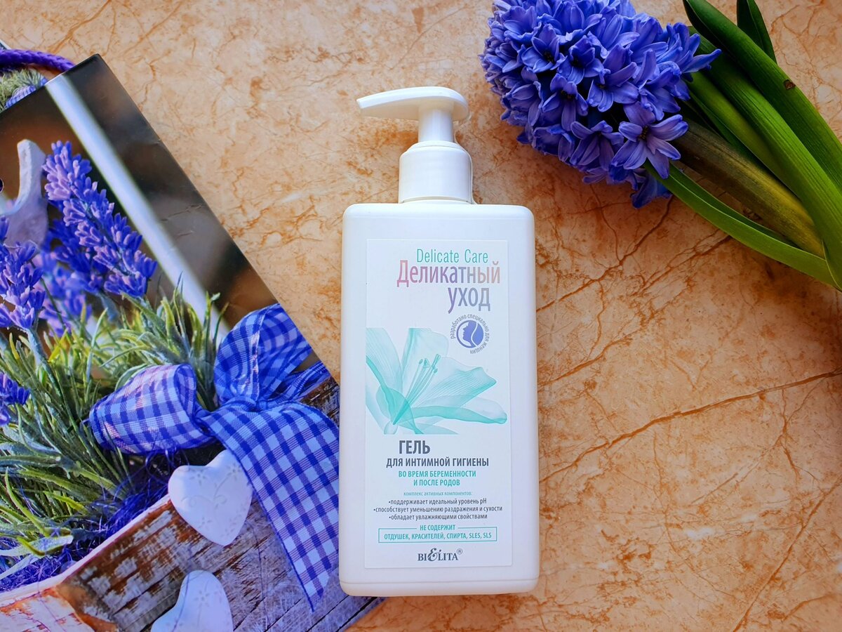 Хочу сегодня затронуть деликатную тему ухода за интимными местами. Как правило об этом мало говорят, но для каждого участка тела нужен свой грамотно подобранный уход. Особенно это касается интимной гигиены в период беременности и после родов.Очень сложно найти средство, которое бы не пересушивало, сохраняло естественный ph-баланс, не вызывало дискомфорт и аллергию. Именно с наступлением беременности я стала пользоваться только аптечными средствами данного направления, так как они были без лишних красителей, отдушек и при этом с хорошими очищающими свойствами.И вот, я познакомилась с гелем для интимной гигиены во время беременности и после родов Delicate Care Деликатный уход от белорусского бренда Белита. Мне очень понравились заявленные свойства, поэтому с удовольствтем стала использовать его.Вот, кстати, что обещает нам сам производитель: