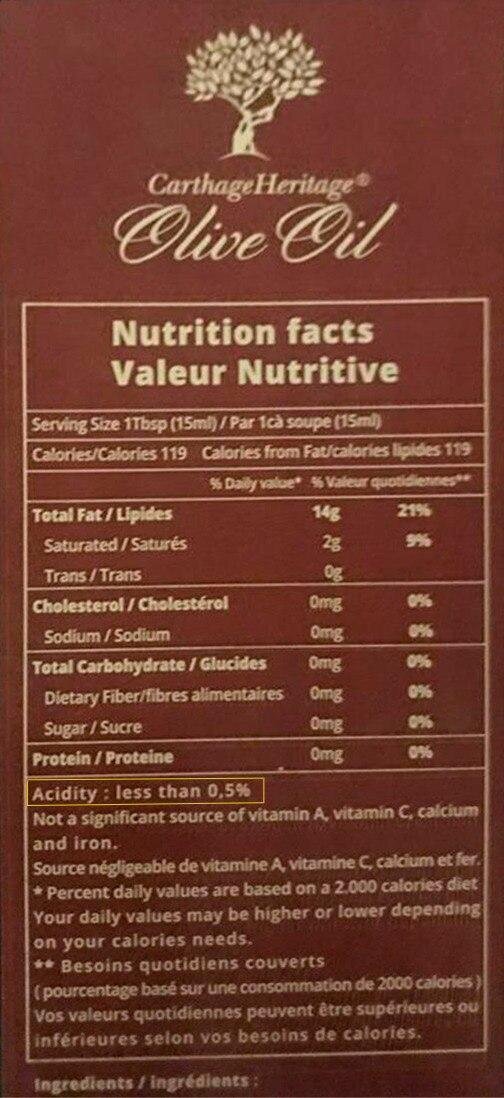 The quality of olive oil largely depends on the level of acidity. The acid number characterizes the content of free fatty acids in the oil. The acid number and peroxide number are the products of aging oils. These indicators are not constant. They change (increase) from the duration and temperature of storage, transportation, from the contact of oil with air (for example, when opening a bottle of oil). The indicators that are indicated on the label (for example, on Greek oil) are those that were determined at the time of filling the oil in bottles.