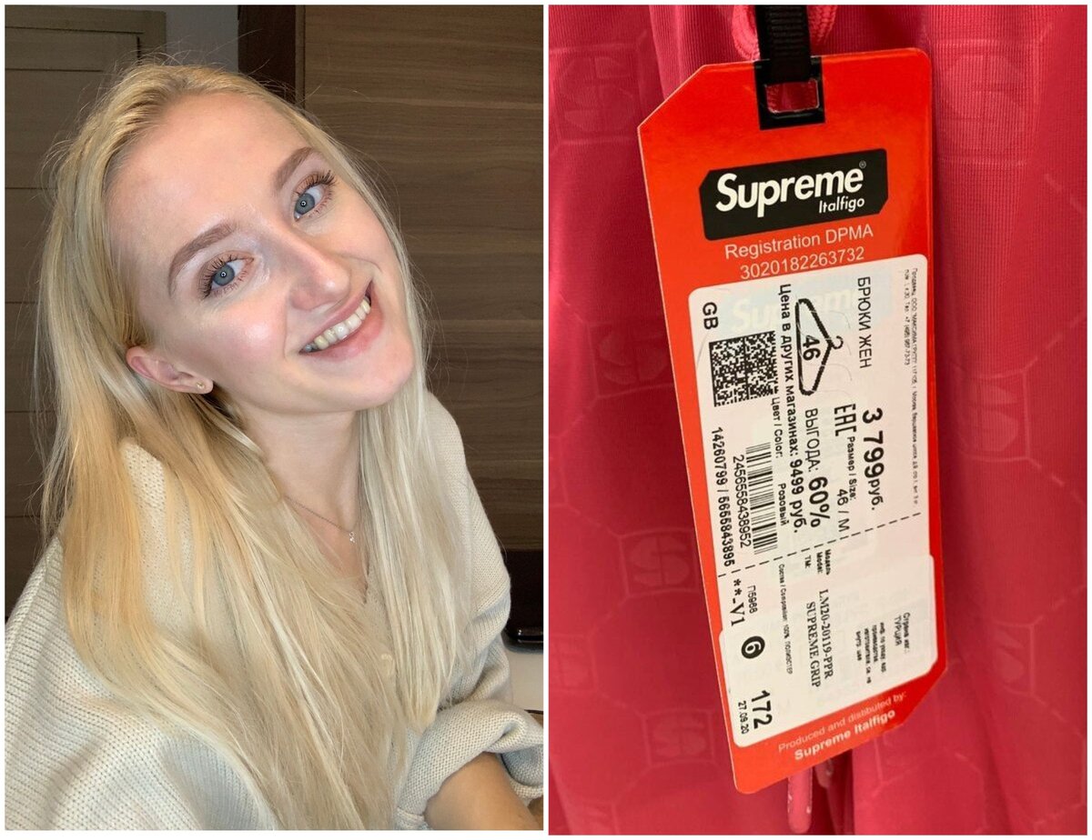 А затем мне попались необычные штаны, сначала я не обратила внимание, но потом увидела надпись на ярлыке и удивилась В Фамилии продаются вещи бренда Supreme.