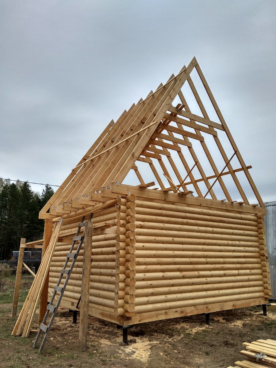 Собрали сруб и стропилы крыши, сегодня будем колотить обрешетку, весь совсем скоро привезут профнастил!